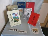 座間市は、11月で市制50周年を迎えました。その50周年をお祝いして、学校図書館前には座間市に関する本を展示しました。これらの本を通して座間市のことを知り、郷土愛に繋がればと考え、本を紹介しています。