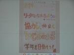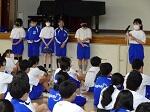 本日、1年生は学年朝会を行いました。内容は、各常任委員会代表の話、学年委員長の話、先生の話でした。学年委員長からは、学年目標と学年のマスコットの「ちぇりー」の紹介がありました集合も早く、発表する人も話を聞く人もしっかりした態度で、1学期間の成長を感じました。目標に向かって、「ちぇりー」と頑張って欲しいです。
