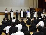 本日、全校朝会をリモートで行いました。内容は、校長先生と生徒会本部役員からの話で、校長先生からは未来を生きるために大切な「主体性」と「創造力」という話がありました。また、朝会後にソフトテニス部、サッカー部、合唱の賞状伝達がありました。