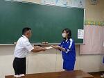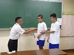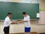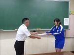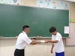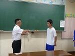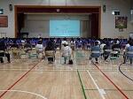 本日、2学期始業式をリモートで行いました。校長先生からは、地震や台風など自然災害への備えとヘルメットについて話がありました。また、始業式に引き続き、剣道、陸上競技、水泳、男子バスケットボールの大会の賞状伝達がありました。