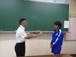 本日、体育館で全校朝会を行いました。内容は、校歌斉唱、校長先生の話、後期学級委員の認証式でした。学年ごとに後期学級委員が紹介され、認証状を受け取るとともに、学年委員長から意気込み等話がありました。リーダーとして頑張って欲しいです。