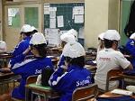 本日6校時、今年度2回目の避難訓練を行いました。今回は地震を想定し、サイレンで机の下にもぐったあと、ヘルメットをかぶってグラウンドに避難しました。無告知であったため、驚いた生徒もいましたが、その後は落ち着いて避難できました。ただ、ヘルメットのあごひもを締めないと、ヘルメットがぐらぐらしたり、後ろに落ちたりすることもわかったので、今後に活かせそうです。