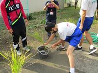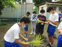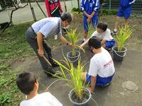 相模級の生徒たちは、6月に田植えを行ったバケツ稲穂が実ったので、校長先生から稲刈りの仕方を教わり、昨日稲刈りを行いました。稲刈りの後は、稲を束ねてベランダで天日干しを行い、その後脱穀作業を行う予定です。