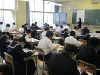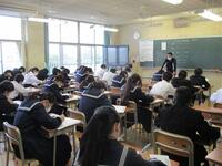 3年生は、25日(金)に高校の先生に来校いただき、進路説明会を開催しました。来校いただいた学校は、公立高校2校私立高校2校合計4校でした。3年生の生徒たちは、高校の先生の説明を熱心に聞き、メモを取っていました。