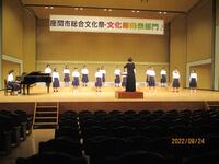 座間市中学校総合文化祭の合唱部と吹奏楽部の発表会が、24日(水)ハーモニーホール座間の大ホールで開催されました。この発表会には、本校の合唱部も参加し、「Replay」「ヒスイ」「いのちの歌」の3曲を披露しました。観衆は、合唱部の美しい歌声に聴き入っていました!!
