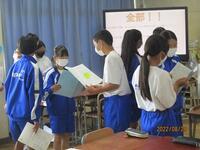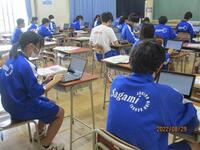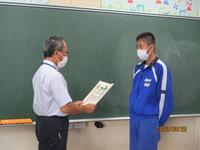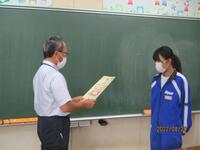 7月20日(水)は、1学期の最終登校日なので終業式をICT機器を活用して行いました。校長先生からは、1学期を振り返っての感想やスポーツ選手の言葉を引用しての挑戦することの大切さについて、それに平和についてなどの話がありました。続いて、生徒指導部の先生からの夏休みの過ごし方についの話や生徒会本部役員からの話がありました。一度、終業式を終え、その後体育祭実行委員長と色長(5人)からの話と表彰式を行ったのですが、嬉しいこととして校長先生から26名もの生徒が表彰状を受け取りました。