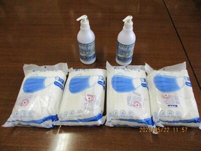 今日、本校の卒業生から嬉しいプレゼントが届きました。そのプレゼントとは、下の写真の「手指用洗浄ジェル」と「マスク」でした。