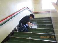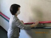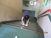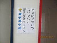 例えば、トイレの入り口にはスリッパを置きました。特に男子のスリッパにはビニールをかけ、定期的にこのビニールを取り替えます。また、昇降口に掲示物を貼り、登下校時に生徒が使用する階段を学年ごとに限定し、校舎内の歩行は右側通行を徹底します。そうすることにより、不意な人との接触を避ける工夫をしています。