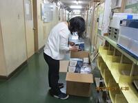 次に、手分けしてトイレ掃除を行い、大きな机等を移動させました。また、株式会社オウルテックから不織布マスクを寄付していただいたので、そのマスクの仕分けも行いました。株式会社オウルテック様には、大変多くのマスクを寄付していただいたので心より感謝いたします。なお、このマスクは来週生徒に配付します。