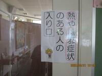 その他、本校では文部科学省から送られてきたガイドラインを基にして、校医さんや薬剤師さんと相談して、「相模中学校用ガイドライン」を作成し先週職員で確認しました。そのガイドラインに沿って、校舎内には色々な配慮をしています。例えば、先週の金曜日に掲載した接触を避けるための階段等の右側通行です。今日は、保健室を紹介します。保健室は、感染症対策として「熱のある人」と「ケガ等の人」の入口を分けて、部屋の中で接触しないように工夫しています。
