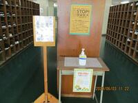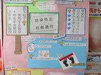まずは、感染症対策として校舎内の階段や廊下にペンキで印をつけ、接触や「三密」を防ぐ配慮を行いました。そして、壁には下の写真にある掲示物を貼りました。