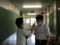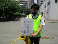 例えば、自宅を出る前に検温を忘れてしまった生徒や体調がよくない生徒の検温をしたり、生徒がよく触る場所の消毒をしています。また、登下校での「密」の防止も呼びかけています。