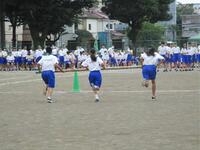 今日は、天気に恵まれ曇り空のもと予行練習を行うことができました。今年は、例年とは大きく違い、新型コロナウイルス感染症対策を意識した体育祭を行うために、種目については昨年までとは違った種目が幾つかあります。3年生の種目責任者を中心として、日頃練習してきた成果を発揮しようと、予行練習でも一生懸命に競技を行っていました。その一生懸命に競技をしている生徒に声援を送る生徒の姿も、とても良かったです!!予行練習では1組兄弟学級(赤組)が優勝しましたが、体育祭当日はどの色が優勝するのでしょうか・・・?