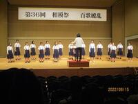 9月30日(金)の午後、座間市中学校総合文化祭の合唱部門が3年ぶりにハーモニーホール座間の大ホールで開催されました。この合唱部門とは、市内6中学校の最優秀クラスが一同に集まり、合唱を披露するもので、感染症の影響を受けて過去2年間は実施できませんでした。どの学校もさすが最優秀クラスだけあり、大変素晴らしい合唱でした。本校は、3年4組が「COSMOS」と「花がほほえむ」を歌い、他校の生徒たちから大きな拍手をもらっていました。