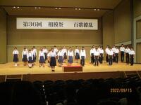 昨日、第36回相模祭をハーモニーホール座間を使用して開催することができました。感染症の影響で、昨年はホールを使用することができずに、年度当初に計画していた実施日を延期して学校の体育館で開催したので、今年度はホールを使用できたことに対して多くの方々に感謝したいと思います。座間市が誇るハーモニーホール座間の大ホールに、生徒の美しいハーモニーが響き渡っていました。まさしくスローガン「百歌繚乱」のごとく、各クラスの歌声がホールいっぱいに美しく広がっているのを感じ、目頭が熱くなりました。また、合唱部・相模級・演劇部の発表も大変素晴らしく、思い出に残る一日になりました!!