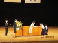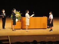 9月19日(祝・月)の午前にハーモニーホールの大ホールで、「第49回座間市福祉大会」が開催されました。この福祉大会では、小中学生が今年度応募した福祉推進作文の2157件の中から、本校の生徒が最優秀賞(1人)と佳作(2人)に選ばれ、市長より表彰状と記念品を授与していただきました。最優秀賞の作品は、「心の福祉」という演題で「ありがとう」という言葉の大切さについて書いたものです。