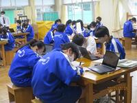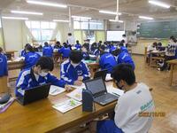 2年生の技術を参観すると、「これからの発電について考えよう~エネルギーミックスについて~」の授業を行っています。教科書や補助教材、それに学習用端末を活用して、生徒が考えたこれからの発電方法について発表していたのですが、理由の中には現在の世界情勢やエネルギーコストも入っていたので、横で聴いていて感心しました。