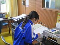 以前このHPに紹介した第49回座間市福祉大会で最優秀賞を受賞した生徒に、7日の昼食時の放送で作文を朗読してもらいました。(下の写真が、その時の様子です。)福祉作文の題は「心の福祉」で、「ありがとう」という言葉の大切さについて書いてあり、「ありがとう」という言葉を積極的に使うように心掛けているという内容のものでした。