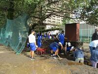 8日(土)は、天気に恵まれて曇り空の下でPTA主催の環境整備を行うことができました。時間は、10時30分から11時30分までの1時間でしたが、生徒のボランティアが60人以上、地域や保護者のボランティアが30人以上の総勢約100人が集まってくださった結果として、日頃は実施できない側溝の土砂を取り除くことができました。また、花壇の花植えや校庭の草取りも行うことができ、校地内が綺麗になりました!参加して下さった皆様、誠にありがとうございました!!