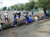 19日(水)は、体育祭の予行練習日でした。前日の夜から朝にかけて降った雨のために、校庭には少し水たまりが残り、土が柔らかい場所があったので、教職員と早く登校した生徒で校庭整備を行いました。その努力の甲斐があり、その後予行練習を実施することができました。今回の予行練習を通して得た経験を基に、土曜日の体育祭に臨みます。下の写真が、その様子です。また、上段のフォトアルバムにも予行練習の写真を掲載していますのでご覧下さい。