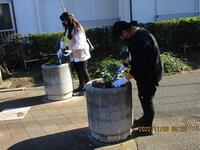 3日(文化の日)には、相模が丘地区の桜並木の花植えに本校の生徒8人が自主的にボランティアとして参加しました。参加した生徒は、「座間市が好きなので座間のためになることをしたいと思い、参加しました。」「花植えを行い、街の美化に役立ちたいと思いました。」などの思いを持ち、積極的に活動していました。花植えを主催した「新生さくら道の会」の会長さんは、生徒の活動する姿を見て大変喜ばれていました。