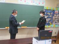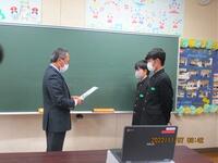 朝会(後期学級委員長の認証式)