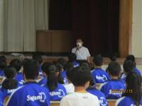 2年生が、非行防止講演会を開催しました。毎年、夏休みに入る前にこの講演会を実施しているのですが、今年度もゲストティチャーを招き生徒たちに話をしてもらいました。生徒たちは、ゲストティチャーの話を真剣に聴き、動画を熱心に視聴していました。