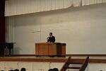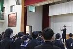 本日、全校朝会を行いました。間もなく人権週間ということもあり、座間市人権擁護委員の橋本様にも来校いただき、人権作文・ポスターの表彰と人権の話をしていただきました。皆で人権について考える機会にしていきましょう。