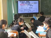 新しい学習指導要領が、今年の4月から完全実施になります。それに向けて、本校では新しい学習指導要領が求める「主体的・対話的で深い学び」を実現するための授業について、研究を続けています。昨日も、生徒たちが意欲を持って積極的に参加したくなる授業を目指し、研究授業を行いました。生徒たちが理解しやすいようにICT機器を活用し、ペアワーク等を取り入れながら思考を深める工夫をしています。コロナ禍のために、保護者の皆様や地域の皆様に直接授業を見ていただけないことが残念です!