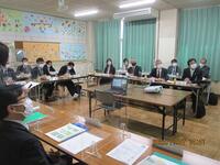 来校された皆様からは、「生徒が大変落ちついていて、良いですね。」「生徒が明るくて、楽しそうに授業に参加していますね。」「教室や廊下に掲示物が綺麗に貼ってあり、整った雰囲気がとても良いです。」などの、お褒めの言葉を多数いただくことができました。生徒や教職員の頑張る姿を見ていただくことができ、本当に良かったです。下の写真は、日々の学校の活動紹介と協議の様子です。