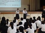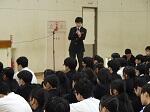 本日、全校朝会を行いました。内容は校歌斉唱、校長先生の話に引き続き、座間市人権擁護委員の大矢隆男先生に人権作文の表彰と人権の話をしていただきました。以前、相模中で教員をしていた大矢先生は、その頃の学校の様子も話してくださいました。