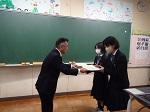 本日、2学期終業式をリモートで行い、校長先生、生徒会本部役員、生徒指導担当の先生からの話がありました。また、終業式の後、賞状伝達を行いました。