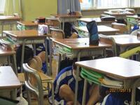 今年度第1回目の避難訓練を実施しました。雨のために外には避難せずに、校舎内でできることを行いました。内容としては、避難経路や避難時に注意することの確認、シェイクアウト訓練(Drop,Cover,Hold on)を行い、風水害の対応についてのビデオを見ました。