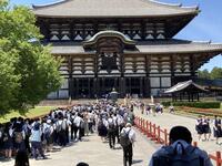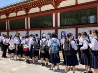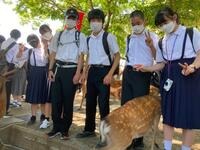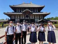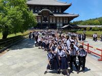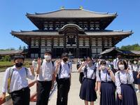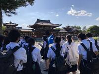 京都駅に着くと、修学旅行生が多くいることに驚きました。その後、京都駅からバスで奈良に向かい、奈良で昼食を食べ、奈良公園大仏等を見学し、クラス写真を撮影しました。大仏の大きさに感動し、鹿を見ては喜んでいる生徒の姿を見て、私たち教師は修学旅行に来られて本当に良かったと感じています。また、奈良公園から平等院に移動し、国宝を見て学習した内容を確認していました。その後、17時30分にホテルに着き19時から美味しい夕ご飯を食べました。