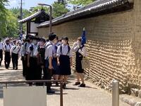 修学旅行の2日目は、京都の班行動です。生徒たちは、準備したコースに向けてホテルを出発しました。天気は、曇空から晴れ間がのぞいており、雨ではなく安心しまた。以下に、今朝と昨日の様子の分かる写真を載せます。