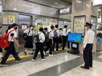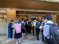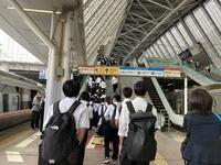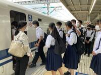 3年生は、朝6時に集合して修学旅行の1日目をスタートしました。予定通り、6時56分に小田急相模原駅から小田急線に乗車し、8時24分には小田原駅から新幹線に乗車しました。学校で確認したとおり、生徒たちは素早く電車や新幹線に乗車することができ、落ち着いて行動できていました。